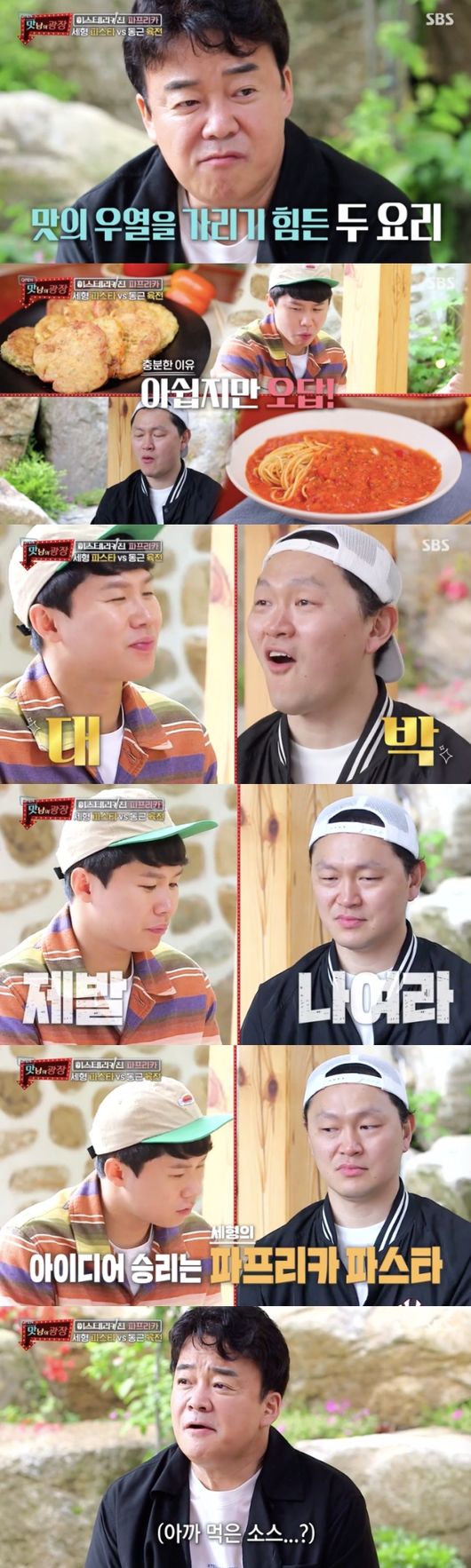 [OSEN=김보라 기자] 배우 양동근과 개그맨 양세형이 파프리카를 이용해 요리 대결을 펼친 가운데 백종원이 파스타를 선택했다.