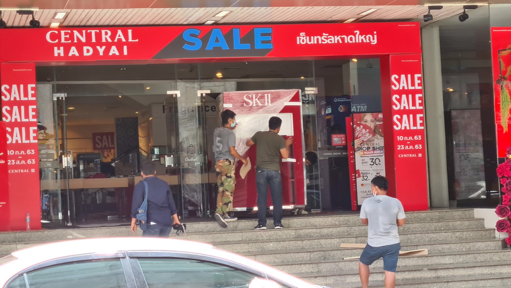 สำหรับบรรยากาศที่ห้างสรรพสินค้าเซ็นทรัลหาดใหญ่ ในวันนี้ทางพนักงานและร้านค้าต่าง ๆ ในห้าง กำลังอยู่ระหว่างการเคลียร์พื้นที่และขนอุปกรณ์ต่าง ๆ ออกจากห้าง