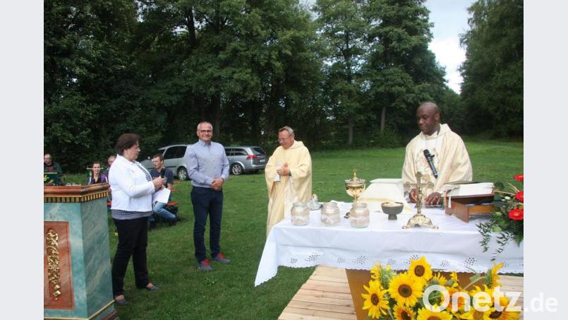 Das Fest der Pfarreiengemeinschaft war auch ein symbolischer Ehrentag der Vereine. Viele von ihnen – nur zwei Beispiele - die Blaskapelle oder die Gesellschaft "Steinwaldia" - mussten wegen der Corona-Pandemie ihre Jubiläums-Pläne verwerfen. Auch daran erinnerte Pfarrer Josef Waleszczuk. Er bedauerte dies. In seiner Begrüßungsansprache gestand der Geistliche der noch jungen Pfarreiengemeinschaft Pullenreuth/ Neusorg: „Wir sind dankbar dafür, dass Du, Pfarrer Paul, vor gut einem Jahr zu uns gekommen bist.“ Waleszczuk ergänzte: „Bitten wir um Gottes Segen für Dich.“ Man freue sich über die freundlichen Worte des Pfarrers aus Nigeria, fuhr der Geistliche fort und gratulierte ihm zum Priesterjubiläum. Ezenwa erwiderte: „Es ist bereits 20 Jahre her, dass Gott mich zum Priester berufen hat, ohne an meine Unwürdigkeit zu denken.“ Gott habe ihn immer unterstützt. „Ich freue mich, dass ihr den Gottesdienst, organisiert von den Vereinen, mit mir feiern möchtet.“