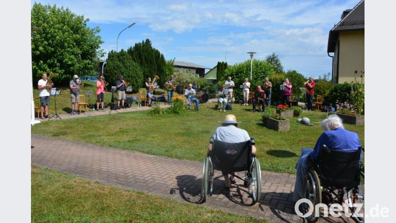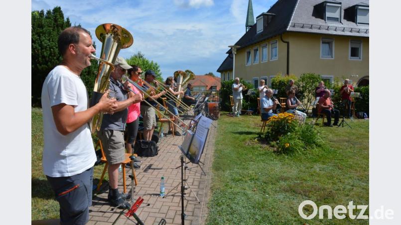 Eine große Überraschung gab es Mittwochnachmittag für die 42 Bewohner des Seniorenzentrums Theresianum: Die Zollkapelle Nürnberg mit Leiter Armin Scharnagl hatte im Garten der Einrichtung Aufstellung genommen und stellte in Form einer öffentlichen Probe ihr musikalisches Können unter Beweis. Verstärkt wurden die Mitglieder der Zollkapelle von einigen erfahrenen Musikern aus Konnersreuth.