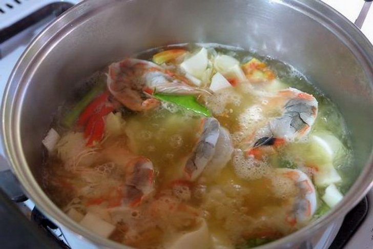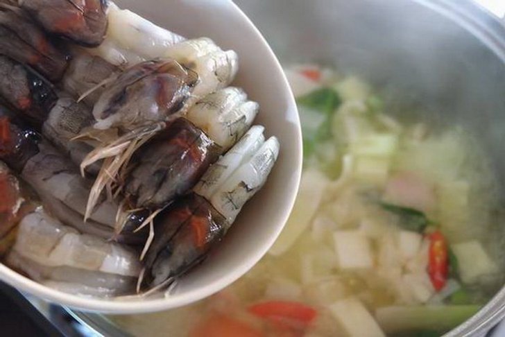 ปล่อยให้เดือดซักพักก็ใส่กุ้งลงไปเลย