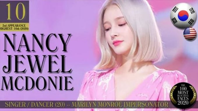 지난 27일 영화사이트 TC캔들러(TC Candler)는 공식 SNS와 유튜브를 통해 '세계에서 가장 아름다운 얼굴 100인'(The 100 Most Beautiful Faces of 2020)'을 공개했다. 이중 모모랜드 낸시는 10위에 이름을 올려 눈길을 끌었다.