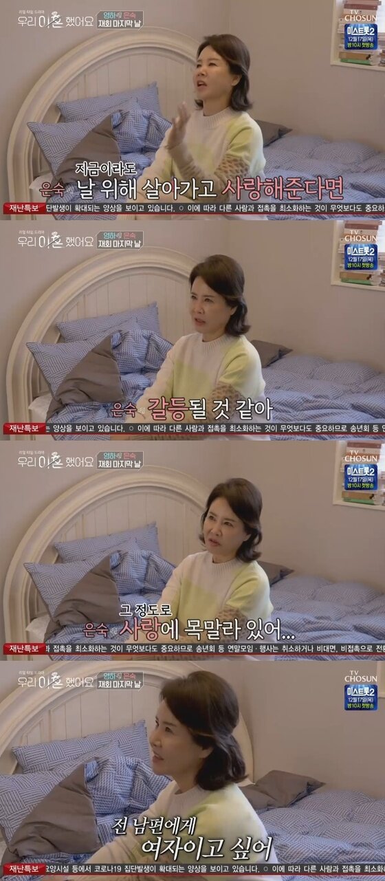 선우은숙은 전 남편 이영하에 대한 속내를 털어놨다. 그는 "지금이라도 날 위해 살아가고 사랑해 준다면 갈등이 될 것 같다"라고 제작진에게 고백했다.