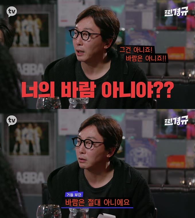 이경규는 "(이혼은) 네 바람 (때문) 아니냐. 대중이 생각할 때 (이혼 이유가) 네 바람이라고 생각한다"고 말했다.