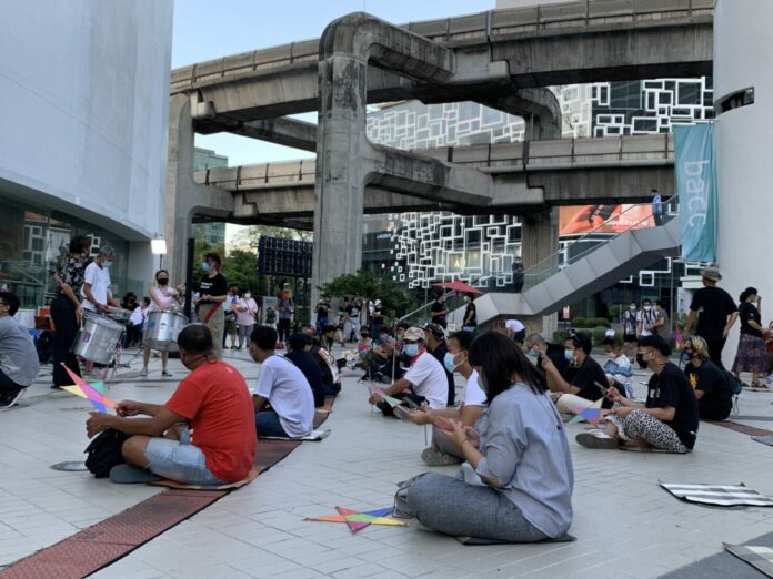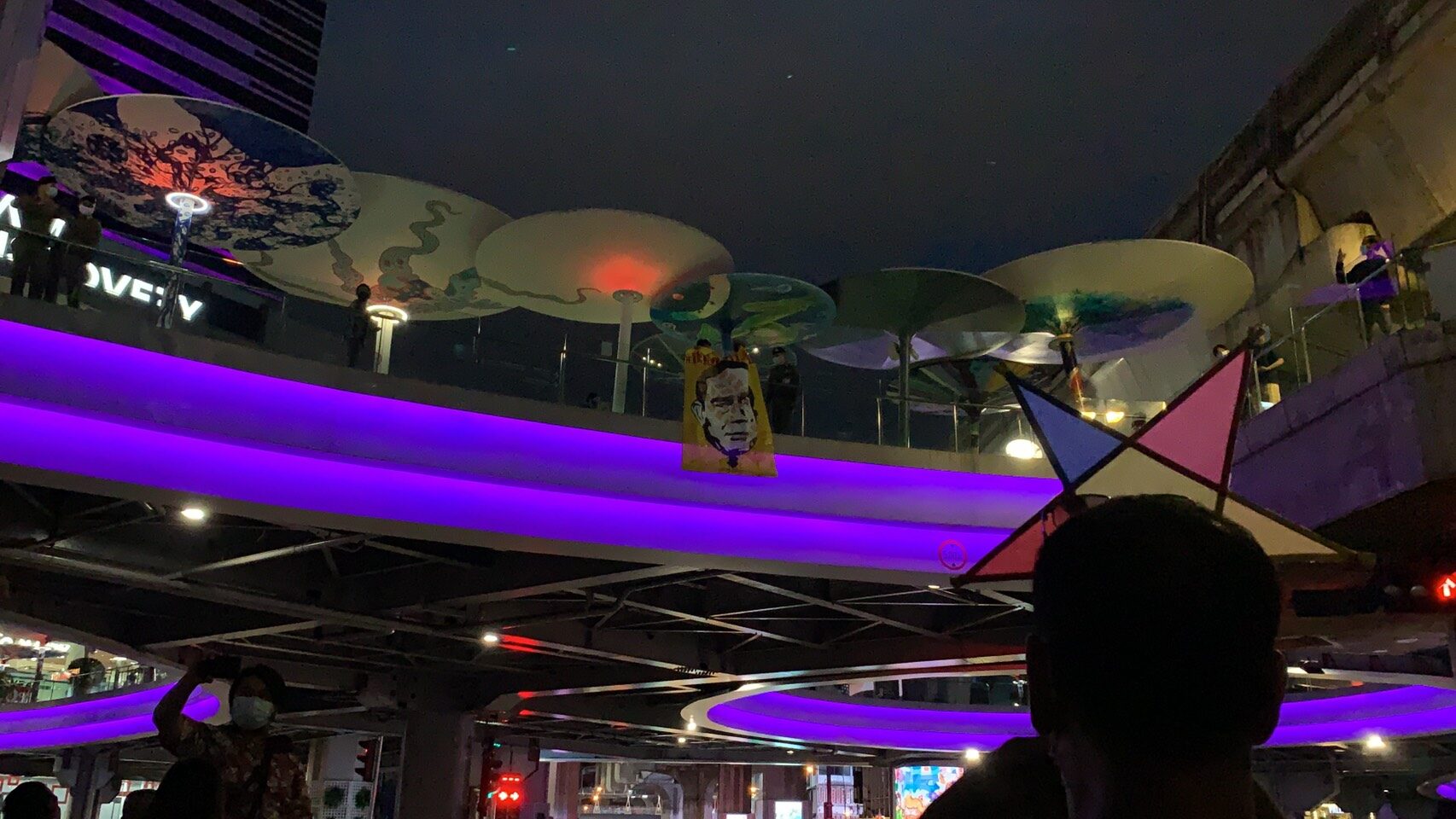 ‘เปิดไฟให้ดาว เรายังฝันอยู่ LightUp Freedom We have a Dream ‘ บนสกายวอล์ก ตร.ปลดภาพหน้า ‘ประยุทธ์’ มวลชนโวยลั่น