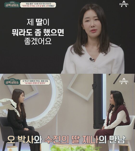 이수진은 지난 14일 방송된 채널A 프로그램 '오은영의 금쪽 상담소'에 출연했다. 이수진은 오은영 박사와 상담을 하던 중에 어머니에 대한 사연을 고백했다.