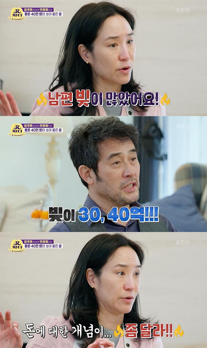 최민수의 용돈 이야기에 강주은은 "처음 결혼할 때 (남편 최민수가) 빚이 많았다"며 과거 이야기를 꺼냈다. 최민수는 "지금 돈으로 30억~40억원 정도였다"고 했다.