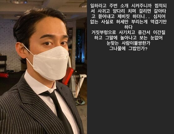 15일 김상혁은 자신의 사회관계망서비스(SNS) 계정에 "일하라고 주변 소개 시켜주니까 집적대서 사귀고 양다리 치며 걸리면 갈아타고 뜯어내고 제비짓 하더니"라면서 "심지어 없는 사실로 허세만 부리는 게 역겹기만 하다"란 글을 올렸다.