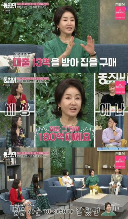 이어 "옆에 있던 언니가 그 이야기를 듣고 자기 집이 6억, 7억도 안 되는데 팔아서 대출 13억을 받아서 샀다"며 "지금 그 집이 180억이다. 내가 당시에는 언니는 무슨 대출을 13억 받아서 집을 사 했는 데, 이 언니뿐 아니라 다른 사람들도 돈이 얼마 없는데 50억 건물을 사더라. 돈을 버는 사람들은 내 돈 조금을 활용해서 부자가 되더라"고 전했다.